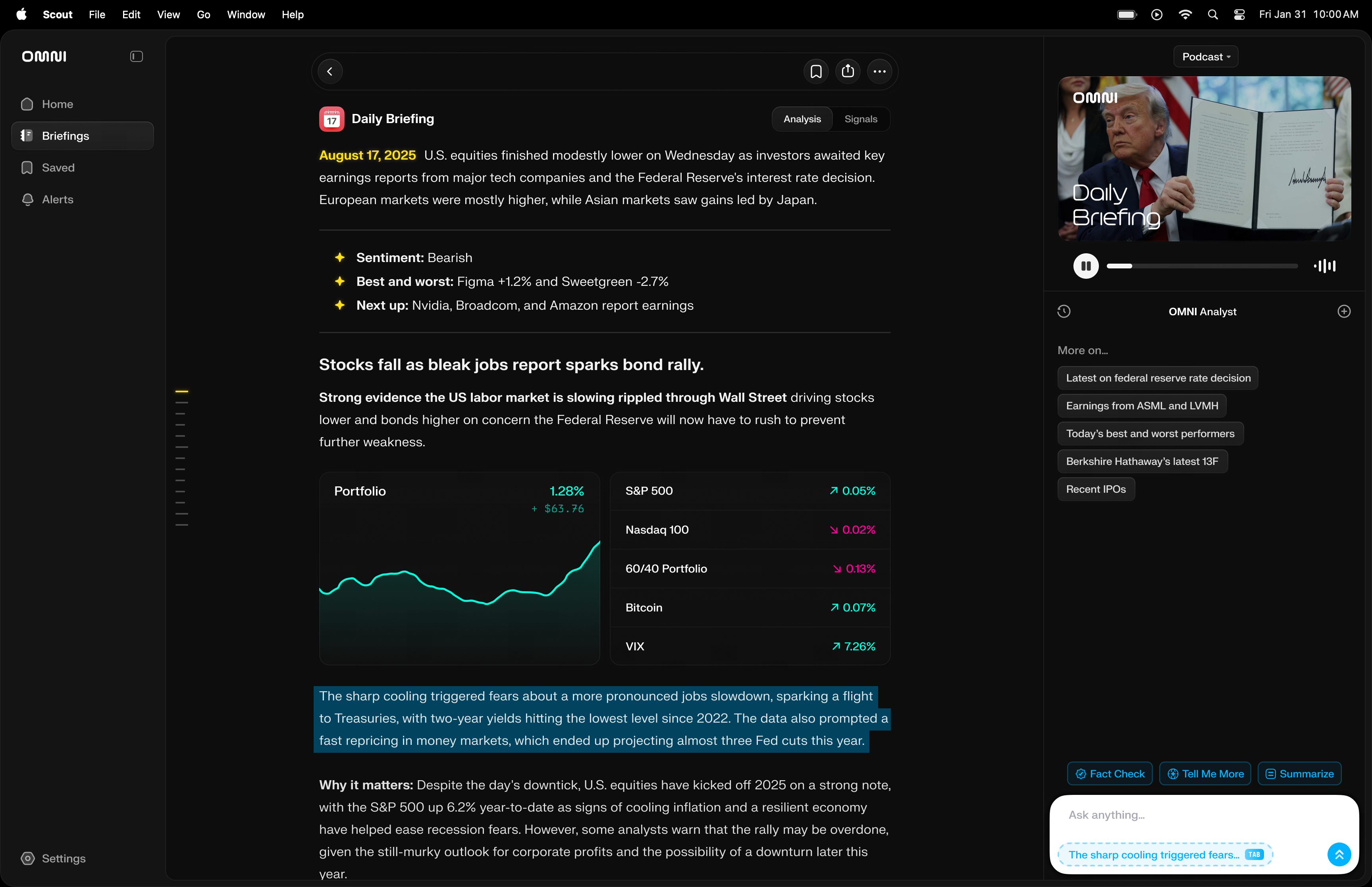 Despite the day's downtick, U.S. equities have kicked off 2025 on a strong note, with the S&P 500 up 6.2% year-to-date as signs of cooling inflation and a resilient economy have helped ease recession fears. However, some analysts warn that the rally may be overdone, given the still-murky outlook for corporate profits and the possibility of a downturn later this year.